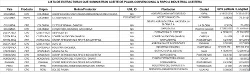 LISTA DE EXTRACTORAS QUE SUMINISTRAN ACEITE DE PALMA CONVENCIONAL & RSPO A INDUSTRIAL ACEITERA