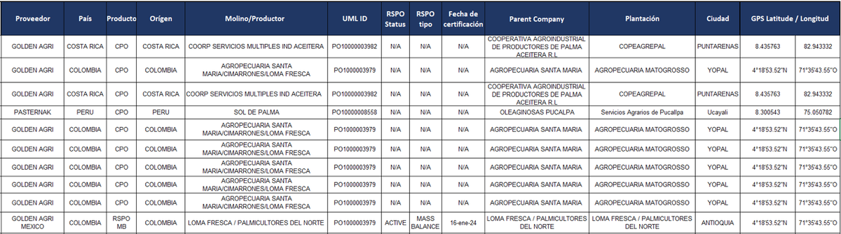 LISTA DE EXTRACTORAS QUE SUMINISTRAN ACEITE DE PALMA CONVENCIONAL & RSPO A INDUSTRIAL ACEITERA 2025-1