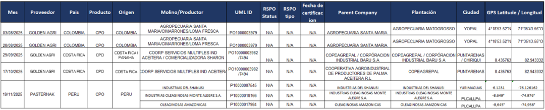 LISTA DE EXTRACTORAS QUE SUMINISTRAN ACEITE DE PALMA CONVENCIONAL & RSPO A INDUSTRIAL ACEITERA 2025-2